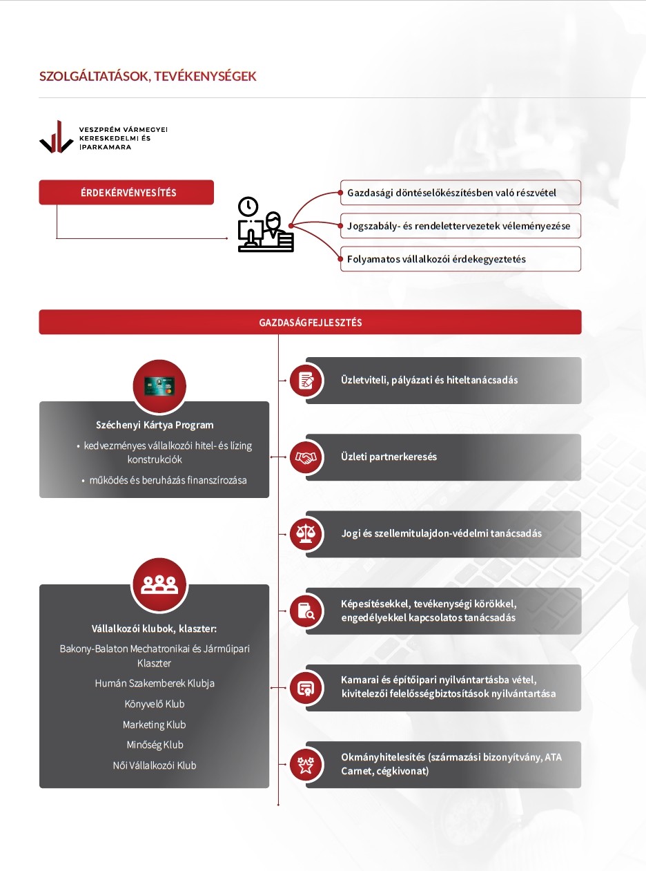 - Vállalkozói klubok, klaszter: Mechatronikai és Járműipari Klaszter, HR Klub, Könyvelő Klub, Marketing Klub, Minőség Klub, Női Vállalkozói Klub