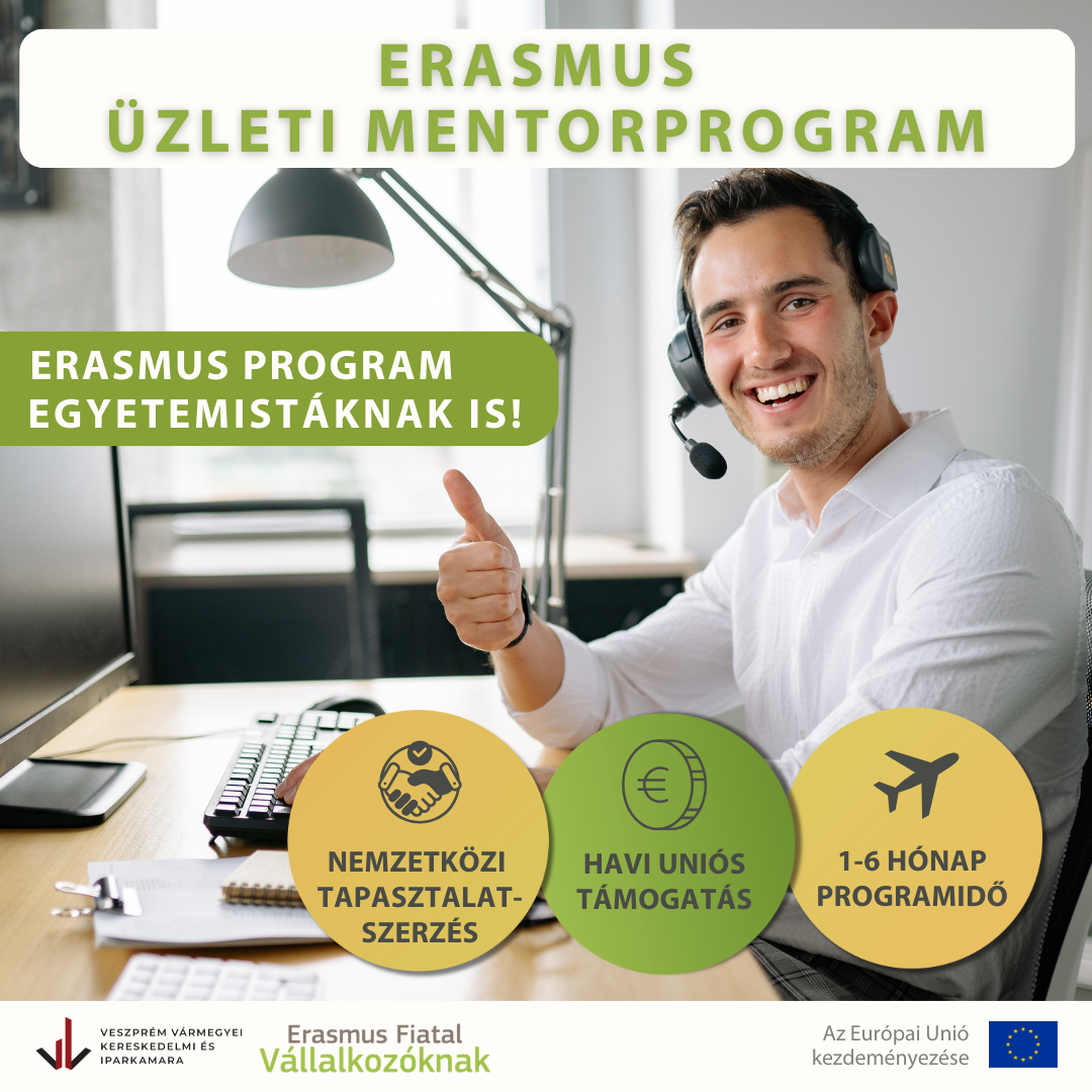 A Veszprém Vármegyei Kereskedelmi és Iparkamara közvetítő szervezetként vesz részt az Európai Bizottság által támogatott, 2009-ben indult Erasmus Fiatal Vállalkozóknak programban.