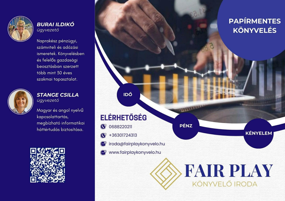 A Fair Play Könyvelő Kft. könyvelési szolgáltatásait kis- és középvállalkozások, valamint egyéni vállalkozók részére egyaránt kínálja.