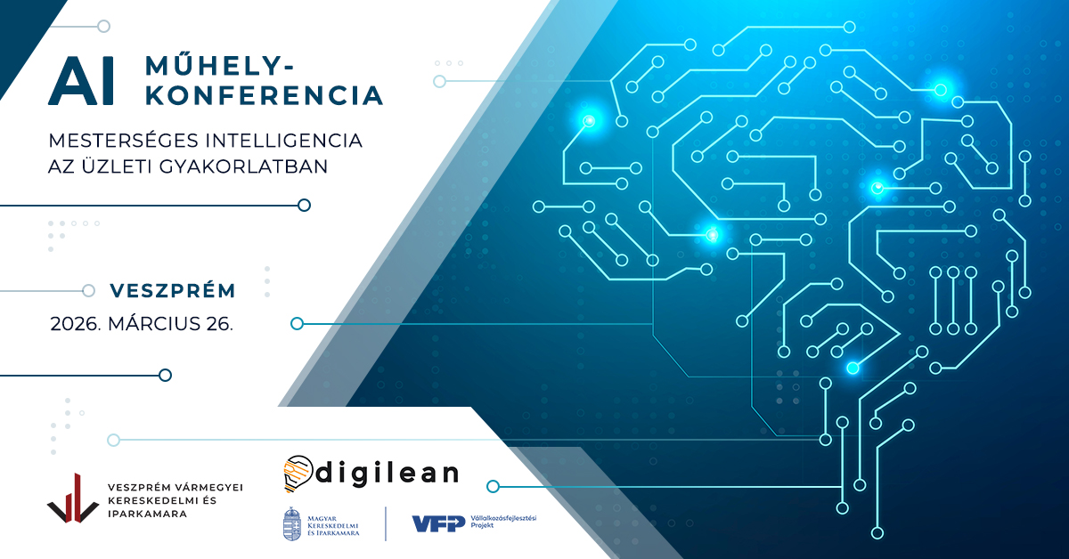 A Veszprém Vármegyei Kereskedelmi és Iparkamara és a Magyar DigiLean Egyesület AI műhelykonferenciát szervez a vállalkozások digitális fejlesztésének és a mesterséges intelligencia bevezetésének elősegítése érdekében.