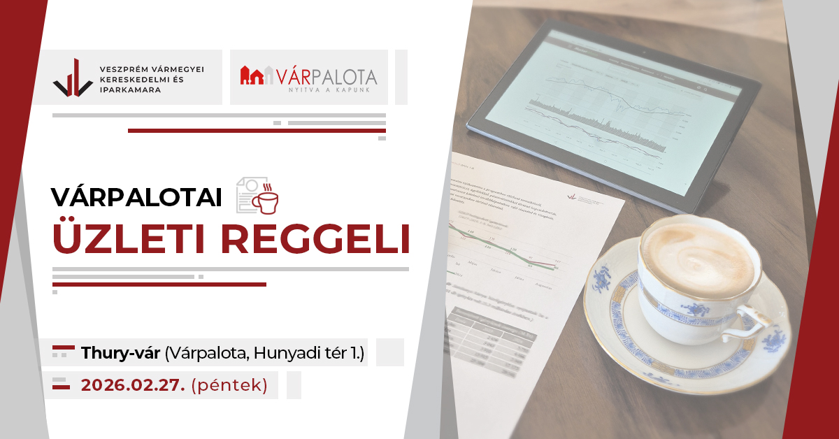 A Veszprém Vármegyei Kereskedelmi és Iparkamara a helyi vállalkozások naprakész tájékoztatása, valamint üzleti kapcsolataik elősegítése érdekében 2026. február 27-én (péntek) 9:00 órakor Üzleti reggelit szervez Várpalotán.